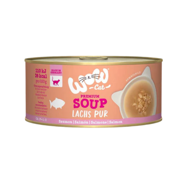 WOW Cat Sopa de Salmón es un alimento húmedo complementario diseñado para aportar sabor y humedad a la dieta de tu gato. Su receta en formato sopa con trozos suaves de salmón favorece la hidratación natural y estimula el apetito incluso en gatos exigentes o con poco interés por la comida. Es ideal como topping sobre alimento completo, premio nutritivo o complemento dentro de una dieta equilibrada y variada, especialmente útil en temporadas de calor o para gatos con tendencia a beber poca agua.